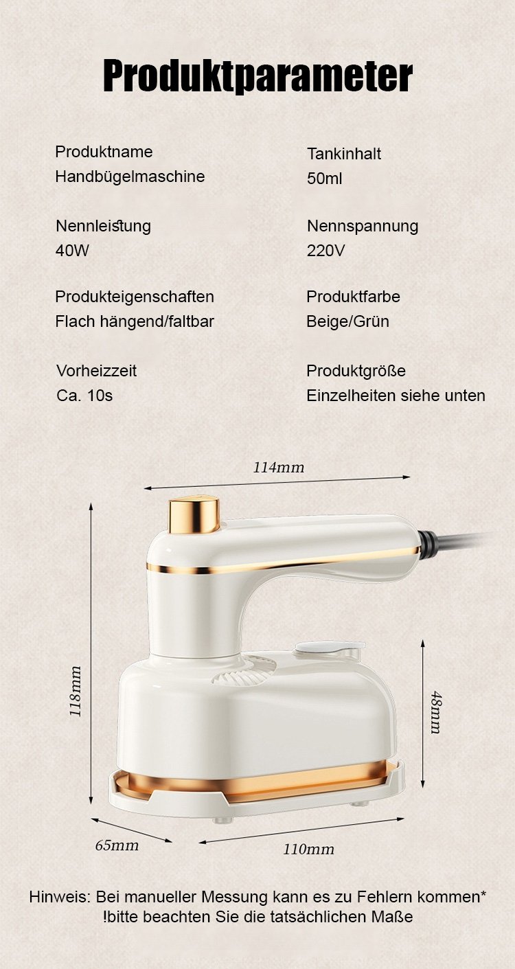 Leichtes tragbares Bügeleisen
